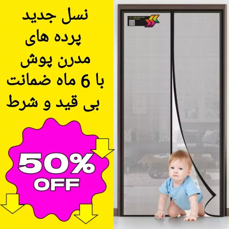 پرده توری مگنتیک عرض90 ارتفاع 220 مگنتی آهنربایی مدرن پوش کد 2149