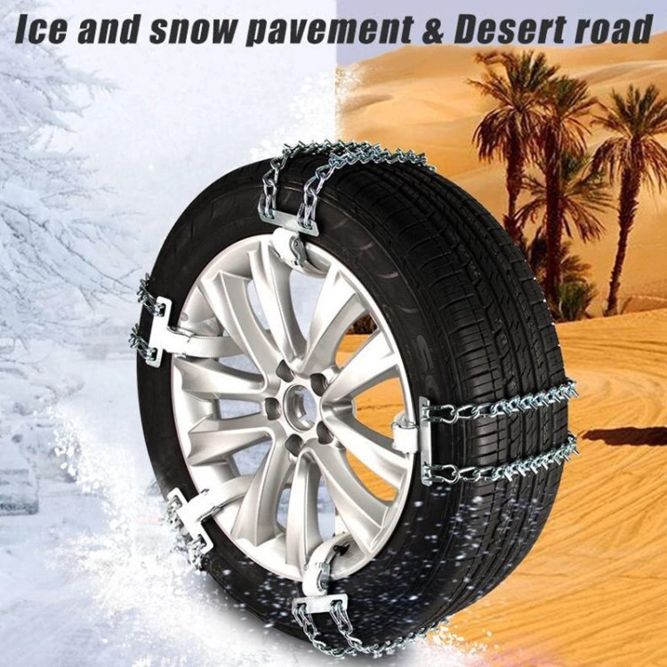 زنجیر چرخ خودرو یکی از ملزومات خودرو در فصول سرد سال میباشد. این زنجیر چرخ تایر خودرو را دربر میگیرد و مانع از لغزیدن آن روی یخ و برف و شن میشود، در شرایط آب و هوایی برفی و در محیطهای کویری شن امکان سهولت در رانندگی را برای شما فراهم می کند و با پوشش فلزی و یخشکن که بر روی لاستیک ایجاد میکند از لغزیدن خودرو بر روی برف و یخ نیز جلوگیری میکند و به سادگی بر روی تایر نصب است. بهراحتی روی تایرها نصب میشود و از این رو بههمراه داشتن آن در صندوق عقب خودرو در فصل سرما علاوه بر کارآمد بودن فضای زیادی از صندوق را اشغال نمیکند.