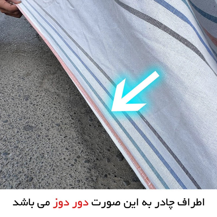 مشخصات-سایر توضیحات: این چادر خودرو به صورت کاملا -دور دوز- شده می باشد، به این شکل که تمامی اطراف چادر خودرو دوخت شده که اصطلاحا از ریش ریش شده پارچه چادر جلوگیری شود xx ضد اشعه مضر خورشید xx پارچه مرغوب درجه یک xx با الیاف پنبه ای xx ضد اشعه xx قابل شستشو