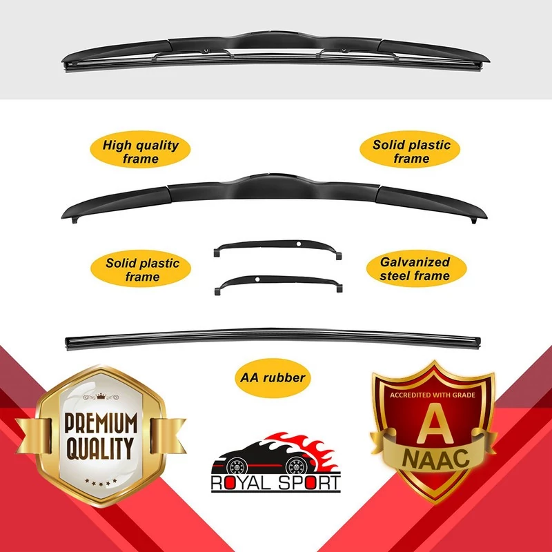 نسل جدید تیغه برف پاک کن های خودرو با قابلیت پاک کنندگی فوق العاده. این محصول نسل جدید تیغه برف پاک کن های مدل HYBRID PLUS برند رویال اسپرت می باشد که توانسته تا 60% قدرت پاک کنندگی را ارتقا و صدای آزار دهنده تیغه برف پاک کن را به کلی از بین ببرد. تیغه برف پاک کن مدل HYBRID PLUS برند رویال اسپرت همچنین دارای طول عمر خوب و مقاوم در برابر سرما و گرما می باشد. انعطاف پذیری بالای تیغه برف پاک کن HYBRID PLUS برند رویال اسپرت سبب پاک کنندگی هرچه بهتر شیشه اتومبیل خودرو شما می شود. به دلیل ساختار 3 تکه چسبندگی خوبی بر روی شیشه خودرو داشته که به لطف تیغه با لبه متمرکز، کمترین رد آب بر روی شیشه به جای خواهد ماند.