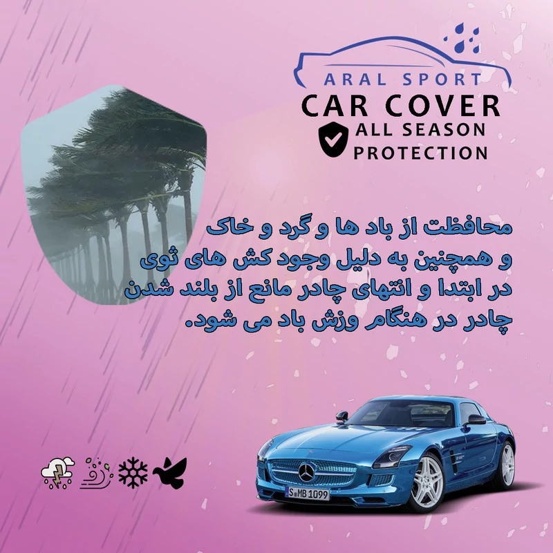 با افزایش ترافیک های داخل شهر و هزینه های مصرفی خودرو، ترجیح مردم استفاده از وسایل نقلیه عمومی است. به همین دلیل خودرو ها داخل پارکینگ مسقف و یا حیاط یا معابر بدون سقف هستند. چادر های آرال اسپرت مدل ARAL - WTPR کاملا مناسب برای خودرو هایی که داخل پارکینگ هستند چون ضخامت بالایی دارند و مانع از عبور گرد و خاک و آسیب جدی پرنده ها می باشند. اما چادر هایی که در معابر بدون سقف هستند این چادر بهترین انتخاب هست چون دارای لایه محافظ PU هست و صد درصد ANTI UV بوده و محافظ عالی ای در برابر آفتاب هست. موارد بالا باعث می شود که شما را مجبور به انتخاب چادر خودرو می کند پس چه چادری بهتری از چهار فصل آرال اسپرت است.
