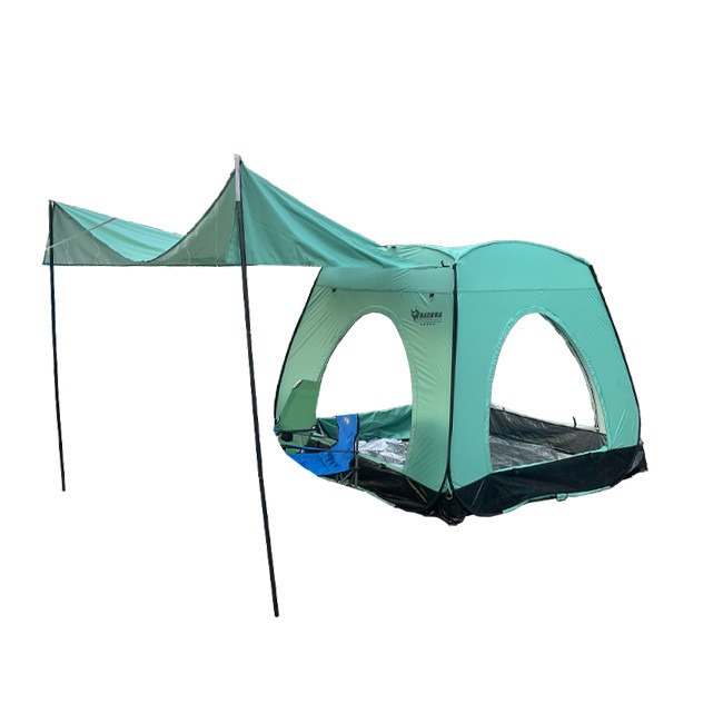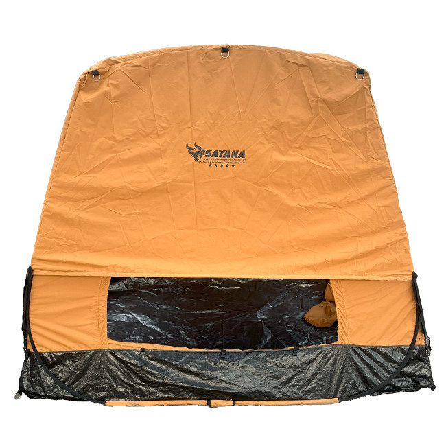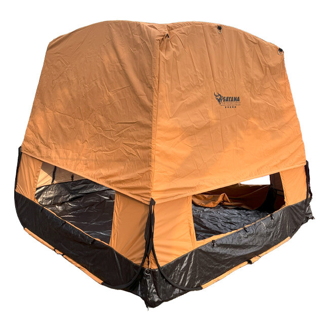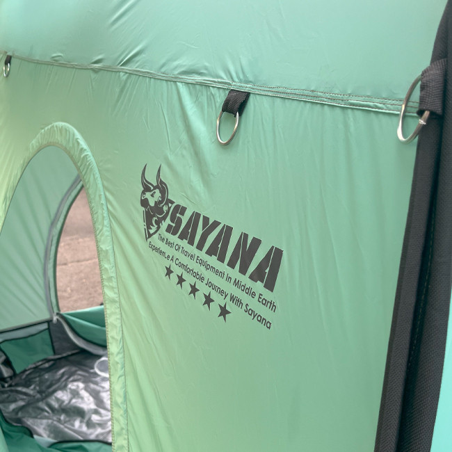 چادر مسافرتی مدل گلکسی سایانا دارای یک سایبان جلوی چادر مدل (تارپ) با اندازه 3*3 به همراه دارد. و محصول دارای یک پوش دوم میباشد. ابعاد خود چادر 2.5*2.5*2.1 میباشد. جنس پارچه این چادر کورتکس کره ای و جنس کفی چادر لمینت ضخیم میباشد. دید 360 درجه این چادر به علاوه دید در سقف (پاناروما) زیبایی این محصول و چند برابر کرده است. 3 طرف این محصول به صورت درب استفاده میشود یک طرف دیگر این چادر از طلق استفاده شده است.
