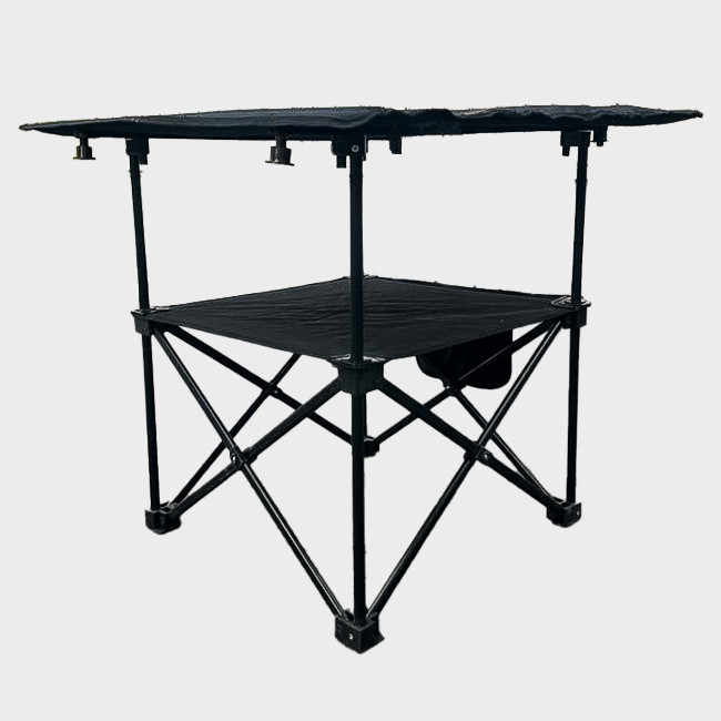 میز سفری، دارای طراحی دو طبقه مجزا که با ارائه فضای زیاد به راحتی کاربران اهمیت داده است.میز سفری آریو دارای پایه های آبکاری شده و ضد زنگ به همراه اتصالات پلاستیکی درجه یک و ضخیم تر نسبت به رقبای خود است. این محصول با افتخار تولید با کیفیت داخل هست. این محصول دارای یک کاور مخصوص در ابعاد 80*10*2 ارائه میشود.این محصول در دو گوشه صفحه میز دو عدد جا لیوانی استاندارد تهیه کرده است.