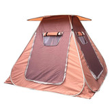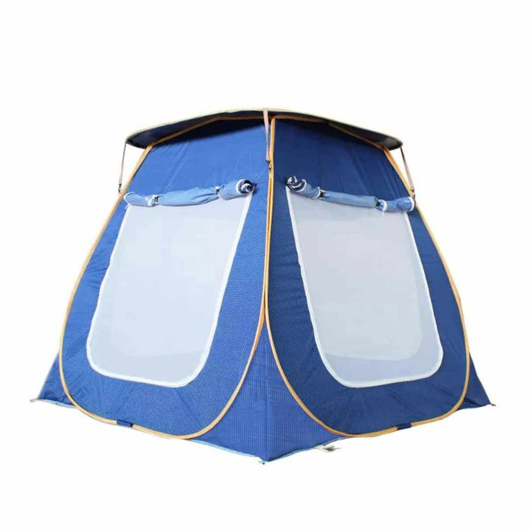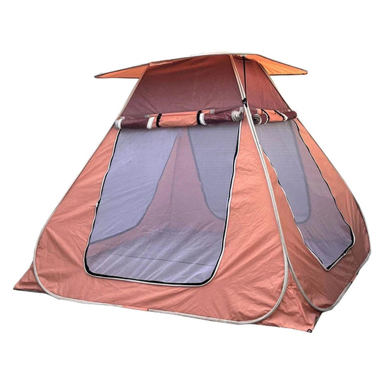 چادر مسافرتی 360 درجه ، تولید شده از جنس برنو ضدآب هست. این محصول دارای چهار درب بزرگ توری دار هست ، که همین باعث میشود شما به عنوان پشه بند هم بتونید از این محصول استفاده کنید. تمام توری ها توسط زیپ باز و بست می شوند. زیپ های درب دو سر زیپ هست و هم از داخل هم از بیرون قابل استفاده هست. روی درب ها چهار پنجره کوچک هم طراحی شده. در قسمت سقف هم یک پنجره توری دار کار شده است. دوخت چادر دولایه هست یعنی پارچه تا شده و از رو دوخت رفته که همین در مقابل رطوبت نفوذناپذیرش میکند. این چادر داری کیف ست و همچنین سایبان ست هم جنس و همرنگ می باشد. ابعاد چادر 250x250 و ارتفاع 210 می باشد مناسب نشستن 8-10 نفر و برای خواب 4-5 نفر می باشد.