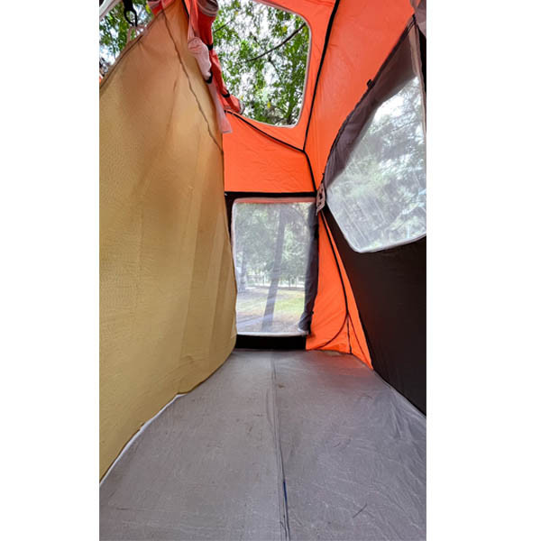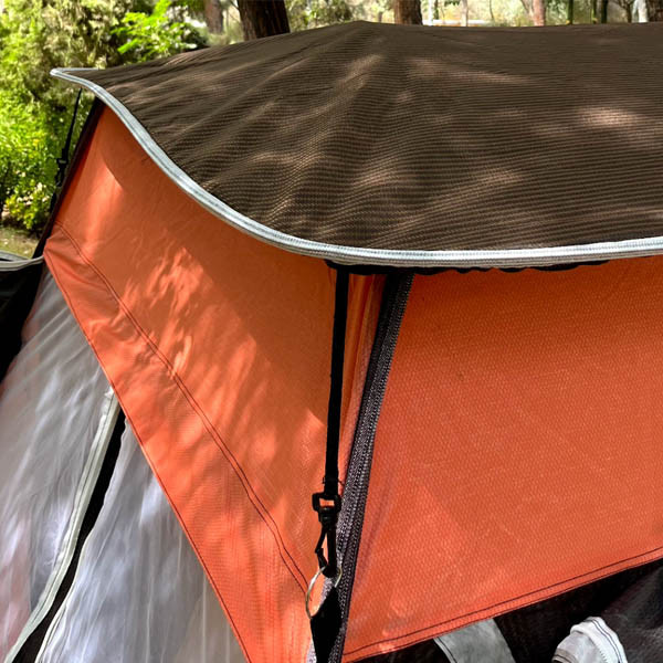 چادر کمپ پلاس در ابعاد 250x250ارتفاع 210 می باشد. این محصول چهار درب توری دار و دو پنجره توری دار و دو پنجره در قسمت سقف می باشد. به واسطه پارچه میانی که به همراه دارد می توانید فضای داخل چادر را به دو قسمت تقسیم کنید. دوخت های چدر گاند دوزی شده هست به این معنا که کالا ضدآب هست و جنس این کار برنو ضدآب می باشد. دارای کیف گرد به قطر 90 سانت می باشد
