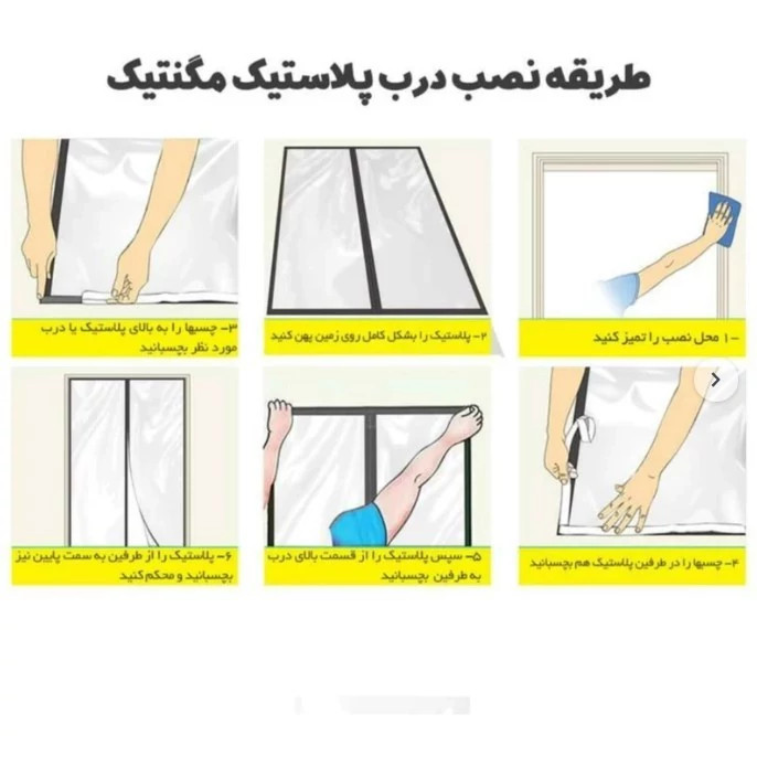 با خرید درب توری مگنتی و مغناطیسی مدل اقتصادی ، شما به راحتی میتوانید آن را بر روی چارچوب اتاق و یا درب اصلی ورودی منزل خود نصب کنید تا در هر زمان که از آن درب عبور کردید پرده به راحتی باز شده و بلافاصله بعد از عبور شما از درب مگنت های آن مجدد به هم چسبیده و مسیر ورود حشرات و پشه ها مسدود خواهد شد. برای نصب درب توری میتوانید از چسب های موجود بر روی پرده استفاده کنید.