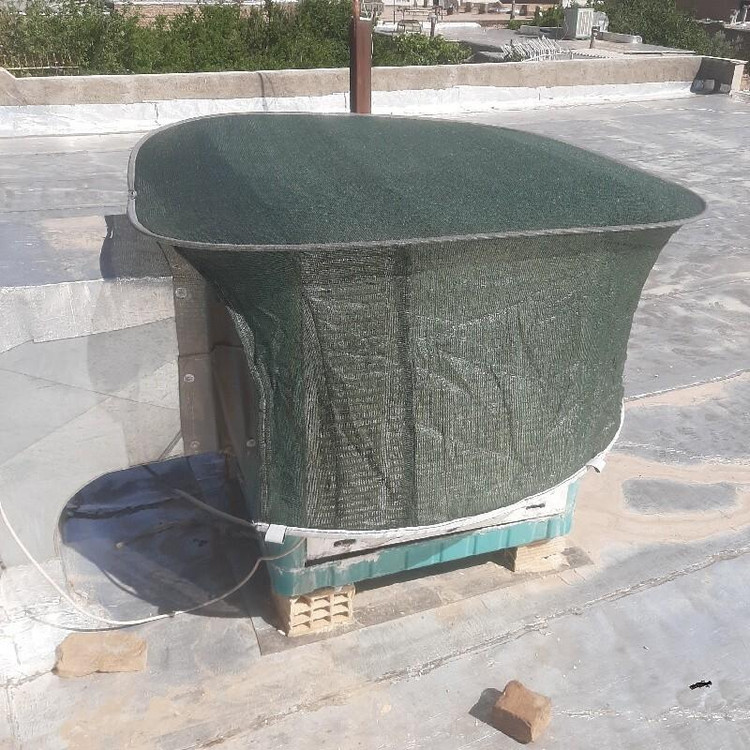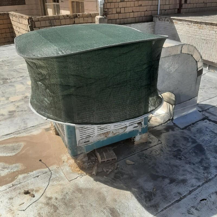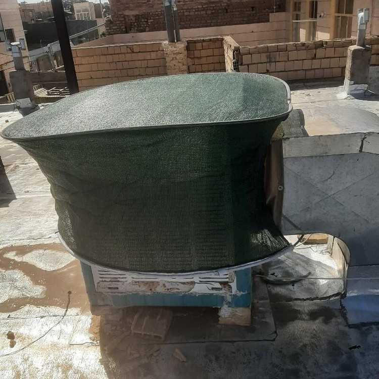 دوخته شده با توری شید 80درصد که با مقاومت زیاد در مقابل آفتاب و عبور هوا به خنک شدن باد کولر کمک زیادی میکند. دور فنر نوار دوزی شده، دارای حلقه برای محکم کردن سایبان