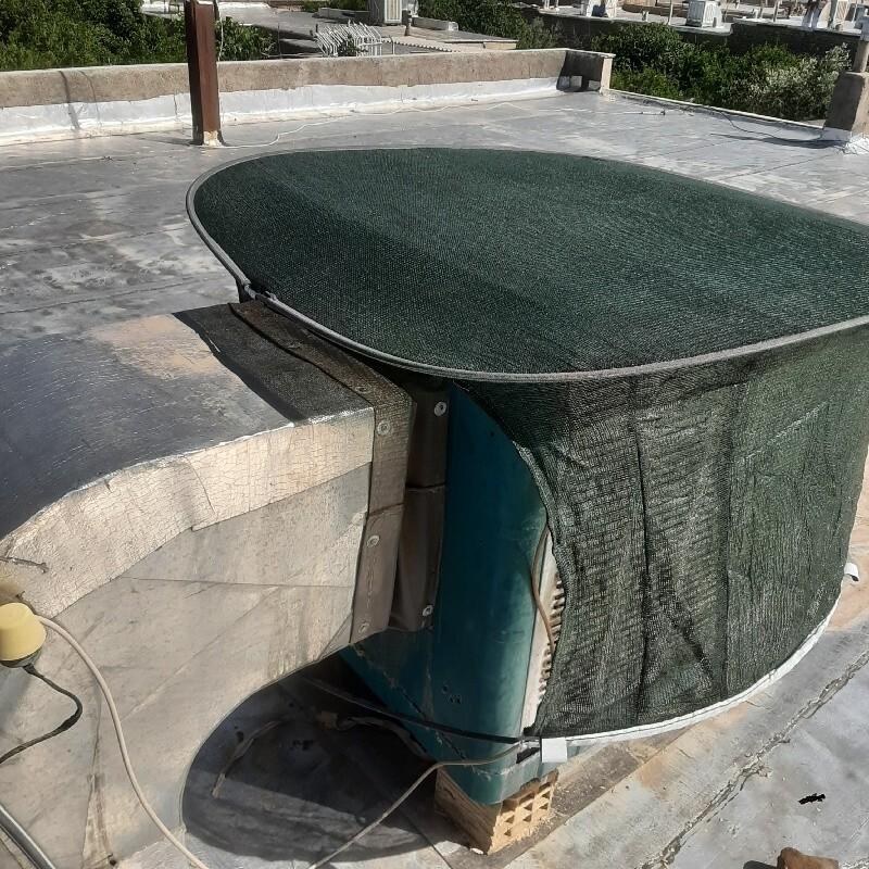دوخته شده با توری شید 80درصد که با مقاومت زیاد در مقابل آفتاب و عبور هوا به خنک شدن باد کولر کمک زیادی میکند. دور فنر نوار دوزی شده، دارای حلقه برای محکم کردن سایبان