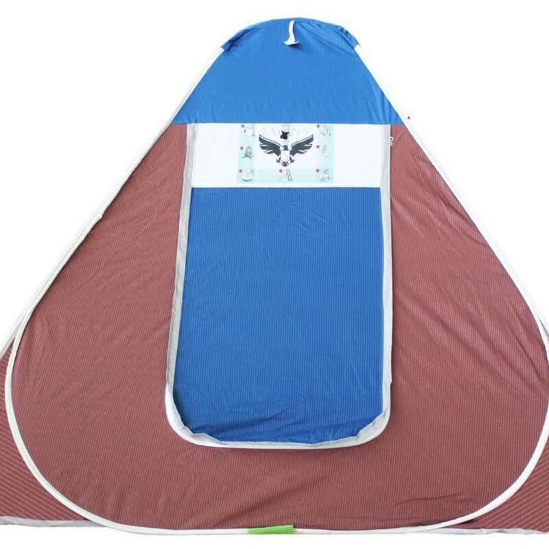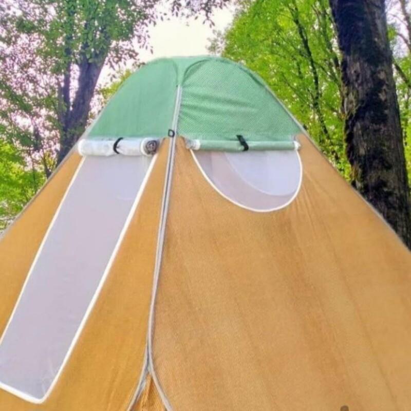 دارای حلقه مهاری و 3 پنجره توری دار و همچنین درب توری دار حریر جهت تهویه بهتر هوای داخل چادر