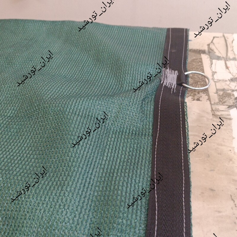 تور شید سایبان ۸۰ ٪ رنگ سبز دور دوزی شده و حلقه دار (دور تا دور کار به فاصله ۱ متر) سایه دهی عالی. آنتی یو وی دار و نسوز در برایر نور خورشید