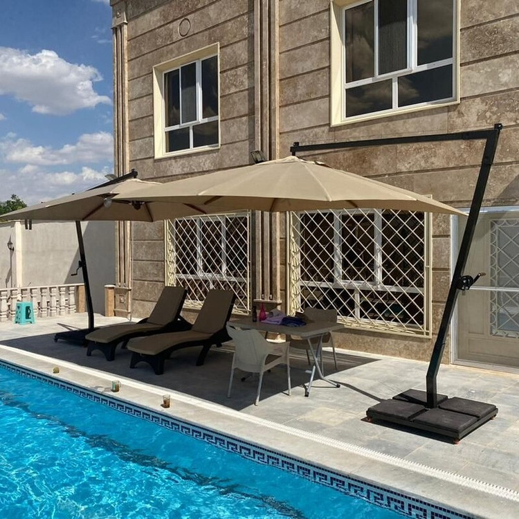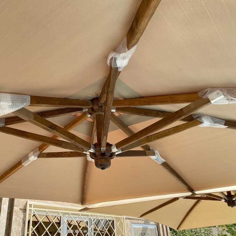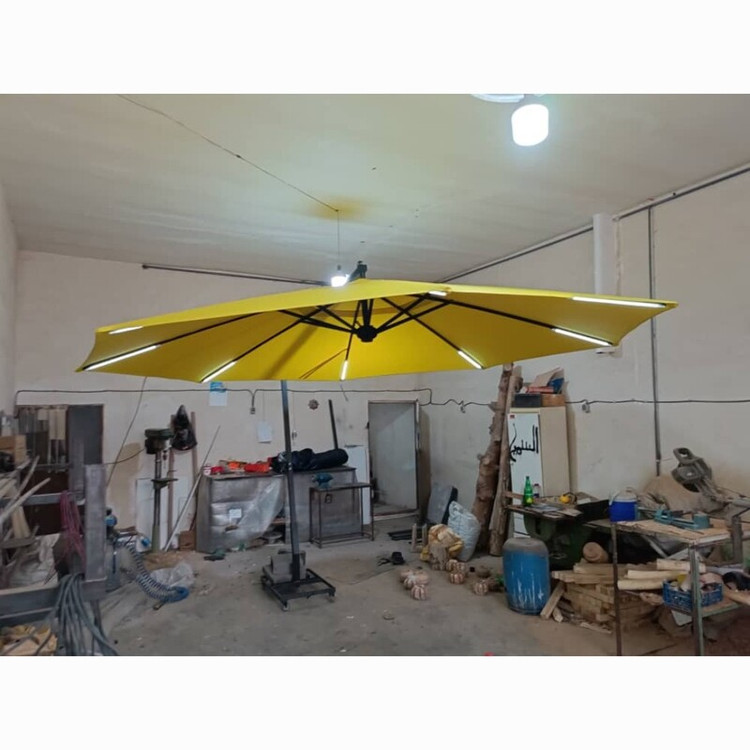 چتر پارچه برزنت نانو ضخیم ضد آب و مقاوم دربرابر نور خورشید . در ساخت چترهای پایه کنار از پروفیل ۵ سانتی سنگین استفاده می شود . پایه ها بتنی با چرخ است که قابل جابجا شدن باشد . حمل و نصب بعهده خریدار است و مبلغ پنجاه هزار تومان بابت نصب راننده میگیرد. ارسال به شهرستان با باربری انجام می شود و بصورت پس کرایه می باشد . زمان باد شدید و برف بسته شود. پارچه با مواد شوینده شسته نشود . رنگبندی نسکافه ای زرد آبی کاربنی قرمز مشکی سبز کله غازی طوسی سفید درصورت تمایل چراغ نصب می شود هزینه نصب چراغ ۸۵۰ هزار تومان است.که بر مبلغ فوق اضافه می شود .