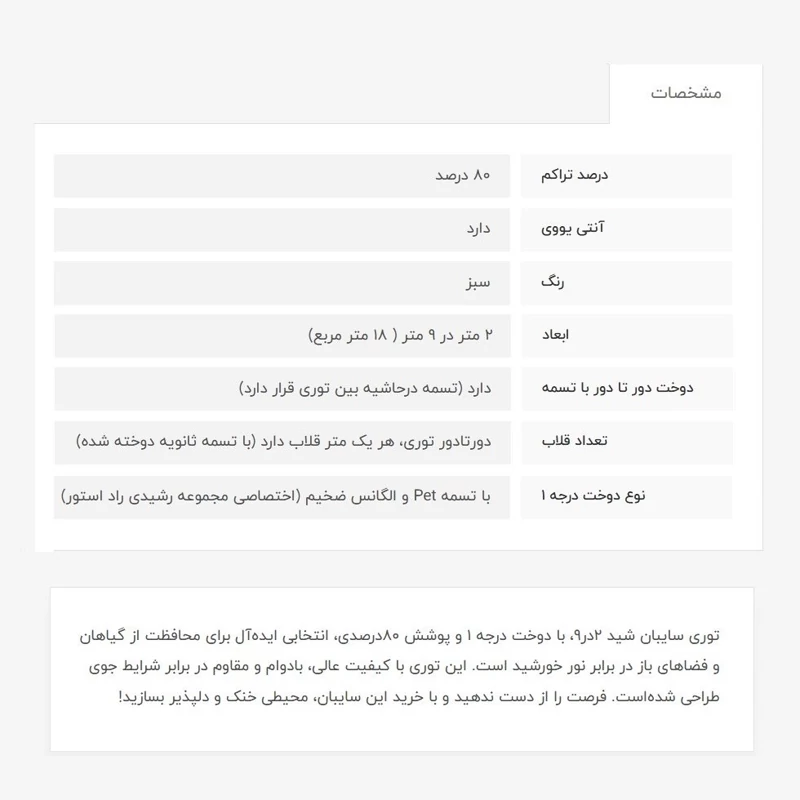توری سایبان شید، 2در9، دوخت درجه 1، 80 درصد