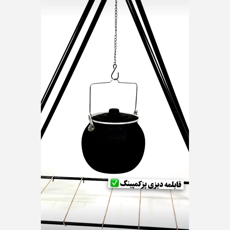 قابلمه دیزی پز کمپینگ دستگیره دار بزرگ جنس : آلومینیوم با روکش نسوز ابعاد: 21 × 21 سانتی متر وزن: 440 گرم دارای دستگیره حمل و آویز قابل استفاده در سفر، کوهنوردی و کمپینگ قابل استفاده روی آتش و زغال