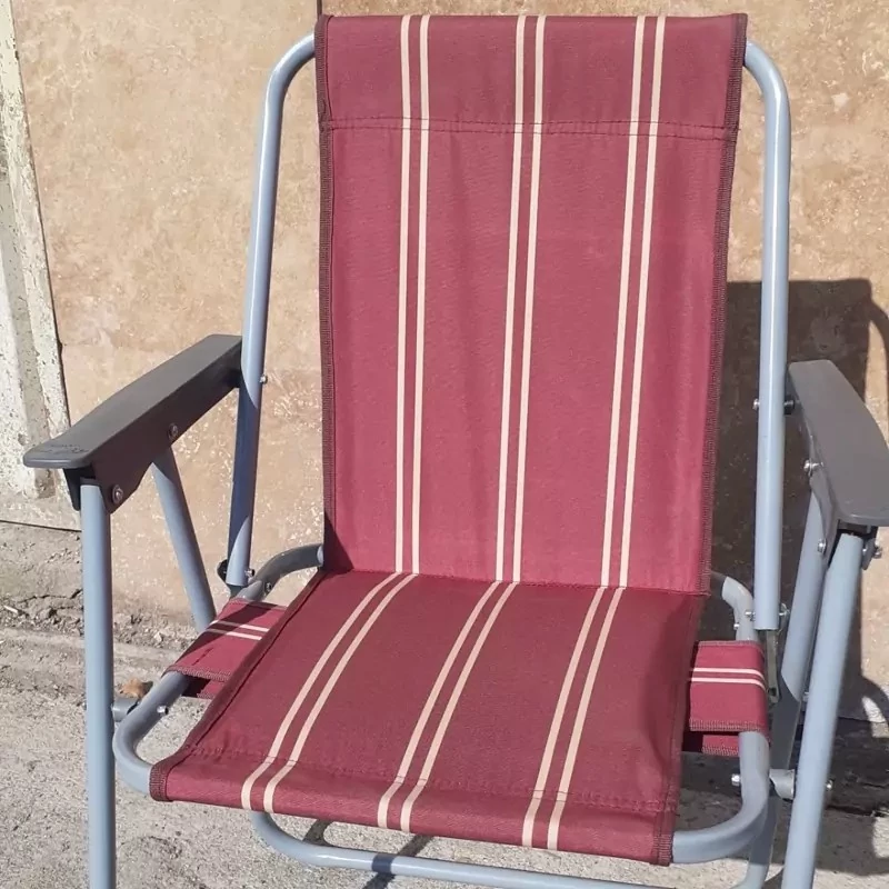 یکی از بهترین راههای نشستن، حالتی است که کمر نسبت به نشیمنگاه مقداری زاویه داشته باشد تا فشار کمتری به کمر وارد شود. با توجه به تمام این مسائل، این صندلی ساحلی را به گونهای طراحی و تولید کردهاند که با استفاده از آن در زمان سفر، بتوان راحتی بیشتری را تجربه کرد. افرادیکه دچار زانو درد، پا درد، کمر درد و … دارند و در هنگام نشستن این درد تشدید میشود پیشنهاد میشود روی مبل بنشینند. اغلب این افراد برای سفر ویا بیرون شهر به دلیل نداشتن راحتی سفر خود را لغو میکنند. این صندلی مبلی جنس رویه آن از برزنت و جنس پایههای آن گالوانیزه بوده که تا وزن 120 کیلوگرم را تحمل میکند. این راحت نشین با پایه را میتوان به راحتی جمع کردبه دلیل وزن کم(2.700کیلوگرم) و زیبایی و در سفر به همراه برد. ابعاد این صندلی در حالت باز 41*51 سانتیمتر با ارتفاع 96 سانتیمتر و ابعاد در حالت بسته 78*52 سانتیمتر با ضخامت 8 سانتی میباشد. طول دسته های این صندلی مبلی تاشو 32 و عرض آن 4 سانتی متر که میتوان در هنگام نشستن و برخاستن از این دسته کمک گرفت