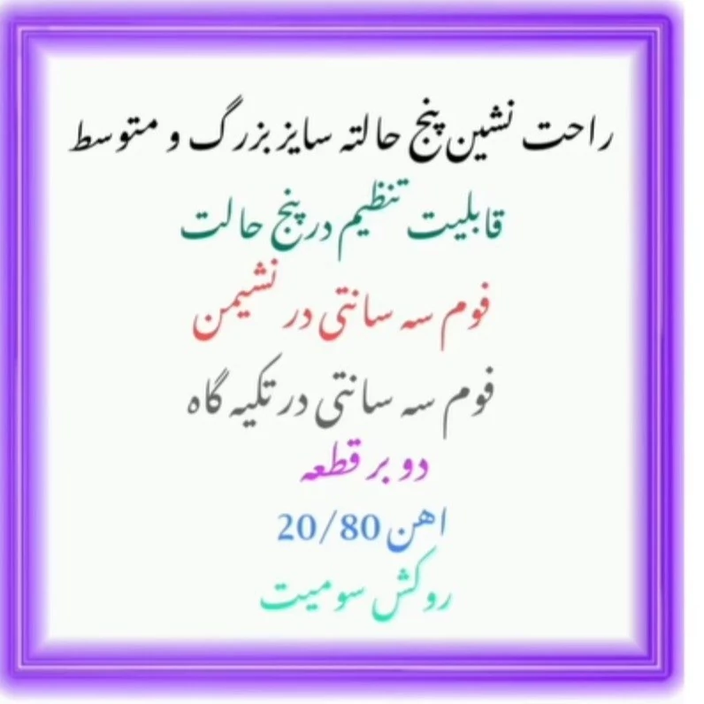 راحت نشین طبی بزرگ ابعاد در حالت باز عرض 45 ارتفاع60 نشیمن 45 لوله درجه یک آبکاری شده با مقاومت بالا داری 5 حالت تنظیم تکیه گاه تحمل وزن تا 150 کیلو مناسب برای تمام سنین