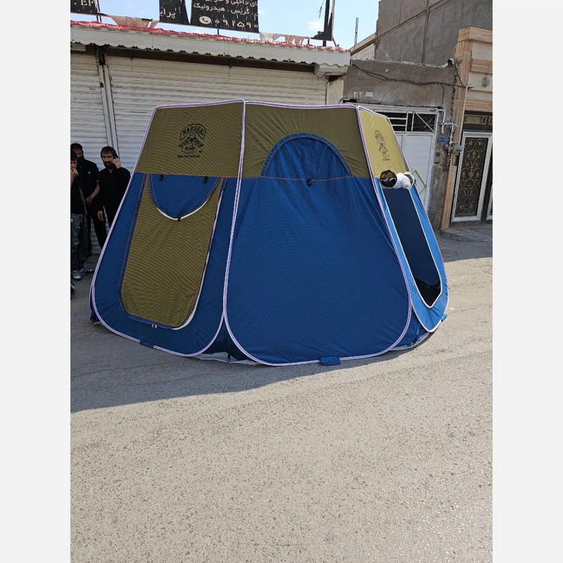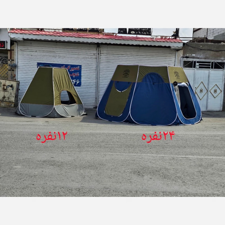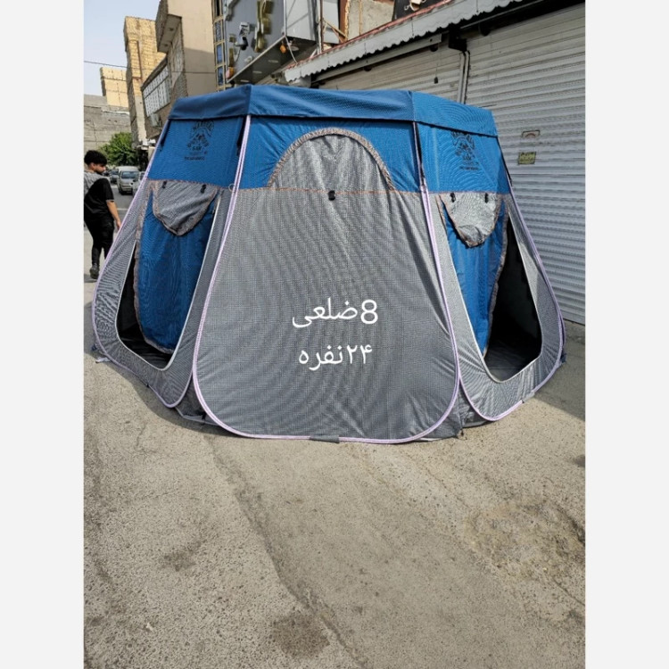 غول چادر های مسافرتی 24 نفره برای 10_12نفر خواب ابعاد 450*420و ارتفاع215سانت جنس برزنتی سقف بسیار بزرگ(سقف این کار اندازه کف چادر 8 نفره هست) حجم جمع شده در ابعاد کوچک کیف فوق حرفه ای از جنس سومیت(پارچه چمدونی) دارای چتر پوش دوم بصورت رایگان دراین پنجره متعدد 4درب بسیار بزرگ 4پنجره دو هواکش دارای4 حلقه اطراف سقف برای چراغ و آویز کردن بند یا پرده جدا کننده دارای 8 حلقه مهار بالای چادر و 8 حلقه در پایین چادر