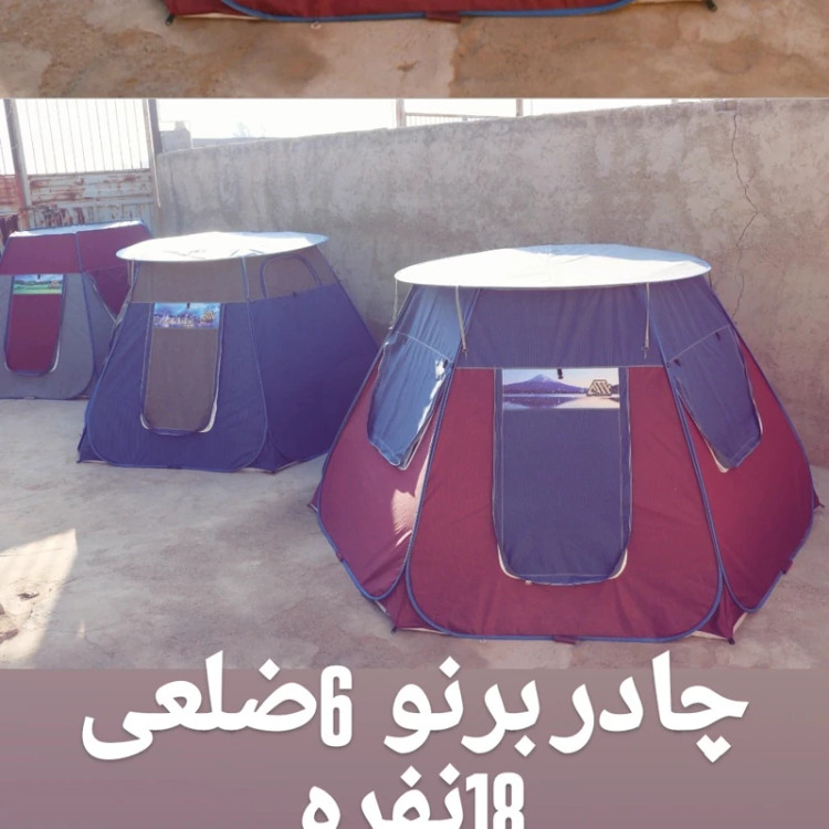 چادر6ضلعی برنو 18نفره ارتفاع:215 ✅️دارای چتر وسایبان ✅️3 دوخت ✅️جیب داخل چادر ✅️2درب ✅️2پنجره بزرگ ✅️2پنجره تهویه ✅️بند سقف ✅️کیف همرنگ