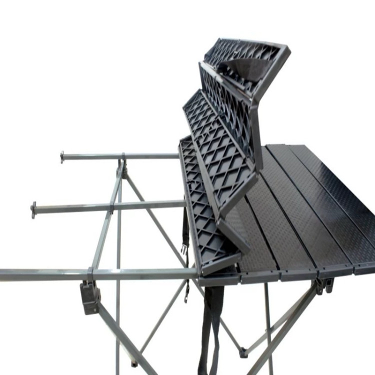 میز تاشو مسافرتی فایبرگلاس بزرگ آتروپاد مدل APD-FB، یکی از جدید ترین میز مسافرتی تولید شده توسط برند ایرانی ای پی دی بوده که بر خلاف مدل قبلی خود کمی از ابعاد بزرگتری برخوردار می باشد از همین رو بازه انتخاب مصرف کنندگان را بر اساس نیاز های خود افزایش داده است. این میز تاشو کمپینگ در واقع متشکل از سه قسمت مجزا بوده که به سادگی به یکدیگر متصل شده و قابل استفاده خواهد بود. صفحه رویی، پایه تاشو و فریم های متصل کننده صفحه رویه به پایه های تاشو، سه قسمت تشکیل دهنده این میز محسوب می شود. پایه و فریم ها تولید شده از آلیاژ فلز روکش دار ضد زنگ بوده که در برابر فرسایش و تغییر رنگ و همچنین در برابر تغییر حالت مقاوم خواهد بود. این پایه ها در قسمتی که روی زمین قرار می گیرند دارای ترمز های پلاستیکی فشرده بوده تا از لغزش و سر خوردن هنگام استفاده جلوگیری کند. همچنین صفحه رویی نیز تولید شده از جنس پلی پروپیلن با رویه طرح دار بوده از رنگ تیره بهره می برد. دو تسمه برزنتی در قسمت های کناری و دو تسمه دیگر در دو طرف دیگر میز تعبیه شده که همگی با توجه به داشتن قفل پلاستیکی استحکام این میز را افزایش می دهند. ابعاد باز شده میز تاشو برابر با 82 × 50 × 59 سانتی متر بوده در حالی که این میز در شکل جمع شده ابعاد 83 در 21 سانتی متر به خود می گیرد تا با توجه به داشتن وزنی حدود 3.7 کیلوگرم به وسیله ساک حمل مخصوص به خود به سادگی قابل حمل باشد. این ساک حمل برزنتی ضد آب بوده و دارای زیپ و دستگیره نیز می باشد.