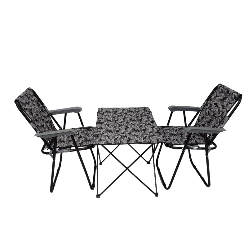 ست دو نفره میز و صندلی تاشو مسافرتی صندلی ها 9 فنره تمام فوم دسته ها نشکن کاملا قابل شستشو به همراه کاور زیپ دار ضخیم قسمت تکیه گاه و زیر نشیمن توسط تسمه برزنتی تقویت شده. برای افزایش مقاومت،برزنت با نوار ضخیم دوردوزی شده. استفاده از لوله محکم و ضخیم