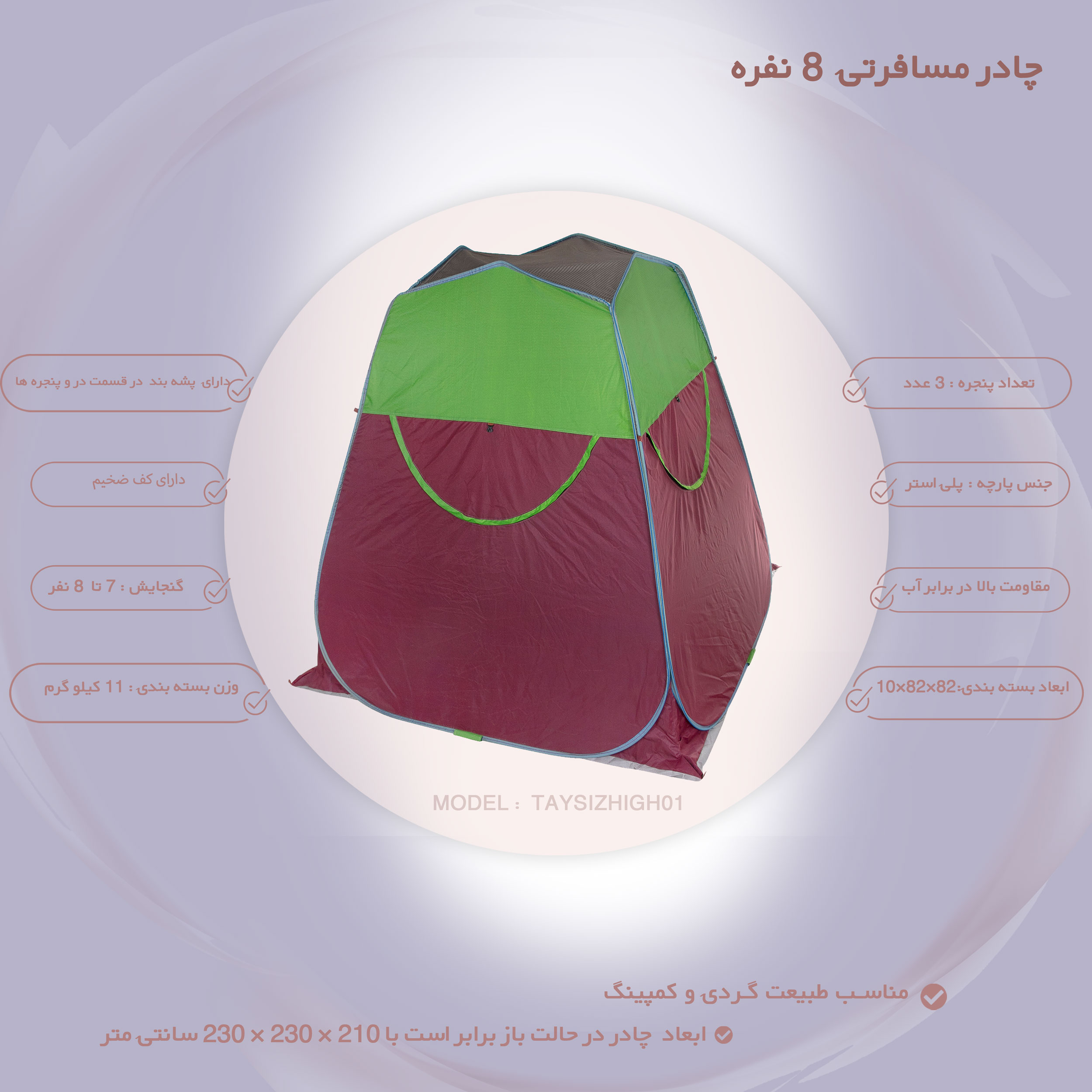 چادر مسافرتی 8 نفره مدل TAYSIZHIGH01